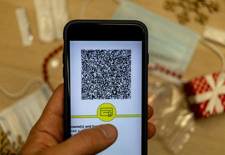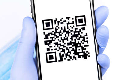 A man shows a qr code in a smartphone containing information about vaccination against coronavirus