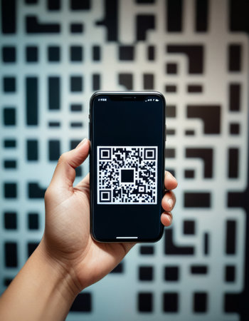 A modern smartphone with a QR code prominently displayed on its screen, ready for scanning to facilitate various digital interactions.