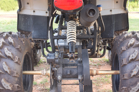Atv suspension closeup, quadbike shock absorbers