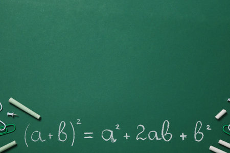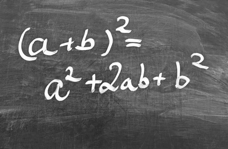 first binomial formula, written with white chalk on a blackborad
