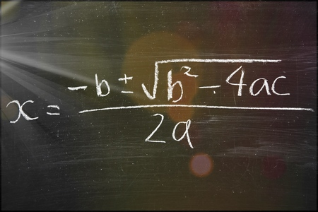Clean chalkboard with quadratic equation written in chalk, symbolizing mathematics education.