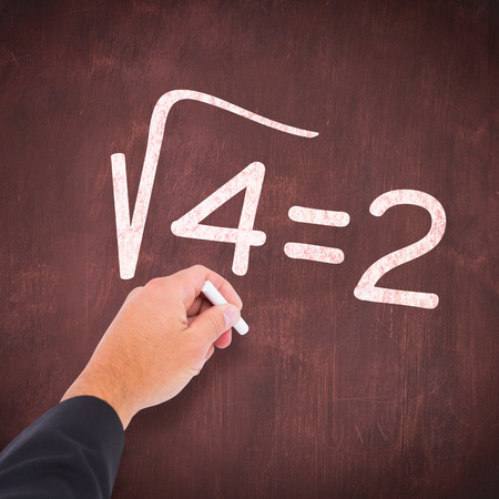 Square root of four on notepad against students desk