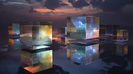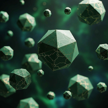 A stunning visual representation of green polyhedra floating in space with a dark background
