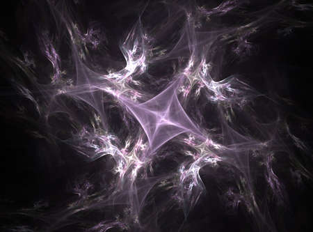 Computer generated fractal illustration of ethereal looking purple and white diamond shapes on black