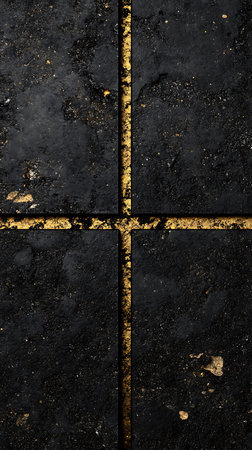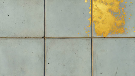 Concrete surface with gold accented tiles for design and decoration projects