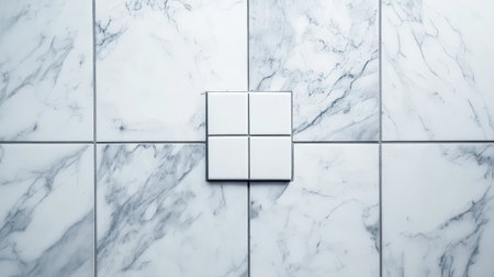 This image showcases an elegant marble tile design featuring a central white square accent, perfect for modern interior decor and renovation projects.