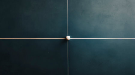 A single white sphere rests at the intersection of lines on a dark teal surface. Minimalist design.