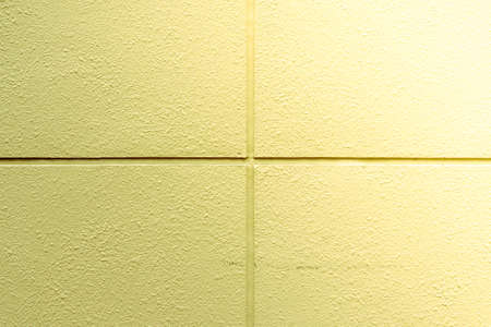 Bright yellow, white and gray square plastic wall panels. Modern trendy design. The main color trend of 2021. Place for writing text, announcements, advertisements