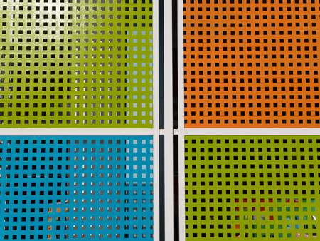 grid of colors motif of decoration on a facade of the streets of Madrid