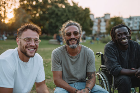 Group of friends enjoying time together in a park setting