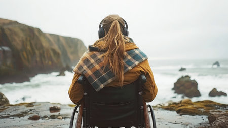 A person in a wheelchair sitting in an open field, A person with disabilities breaking barriers and embracing their unique abilities