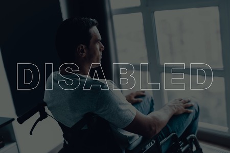 Disabled handicapped man sitting on wheelchair 088