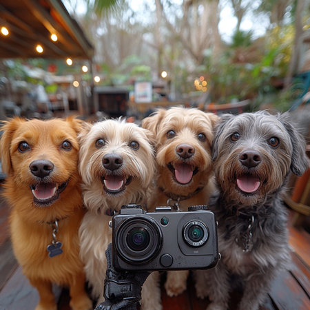 Capture the unique personalities of dogs in delightful selfie moments. Creating using generative AI tools
