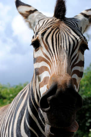 Zebra in the zoo. Wildlife scene from nature. Animal portrait.
