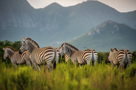 Picture of a group of zerbras eating grass in the Isimangaliso National Park in Southafrica