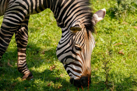 zebra in the zoo of barcelona. Striped black and white mammal animal zebra.
