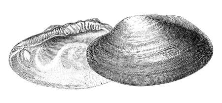 Closeup of a collection of seashells in sepia tone, perfect for natural textured backgrounds