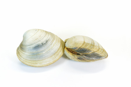 Fresh clams, raw cockles on a white table. Concept - Clean Monday, healthy food, aphrodisiac; Mediterranean Diet.