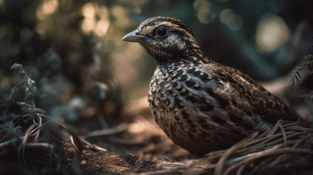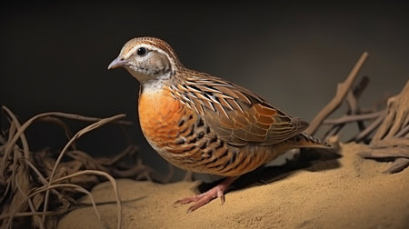 Generative AI : beautiful barred buttonquail Turnix suscitator on ground