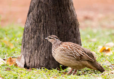 The quails upperparts are brown, streaked and striped with beige. Quails are very small birds