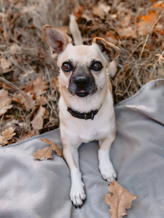 Funny little dog looking at the camera