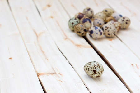 Quail eggs on wooden background