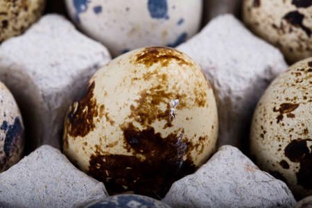 Close up photo of organic farm quail egg.