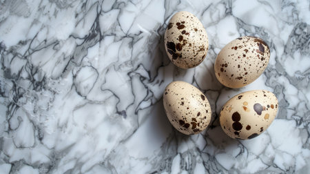 Quail eggs on a marble countertop, natural and rustic setting