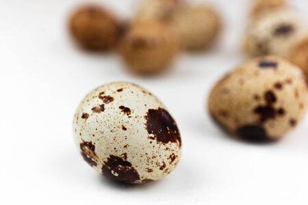 several quail eggs close up shoot on a white