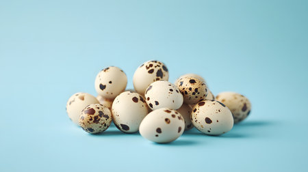 Fresh Raw Quail Eggs on Blue Background for Culinary Design Projects