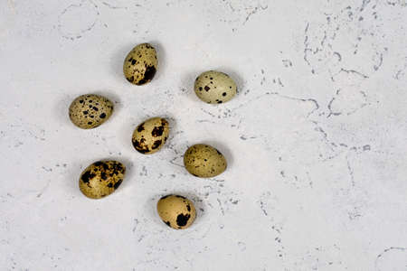 Quail eggs on a white-grey concrete background