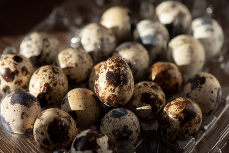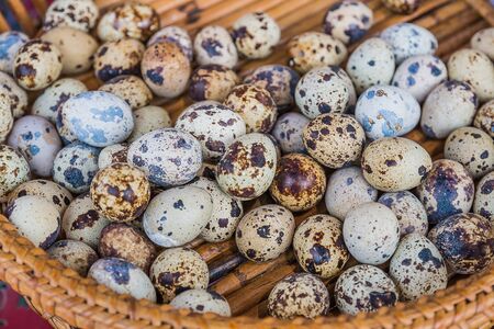 Close up fresh quail eggs, ingredient for cooking.