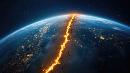 close-up of a fault line, with the earth shifting and grinding, created with generative ai