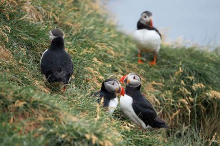 Atlantic Puffin Fratercula arctica on cliff top in Grimsey, Iceland