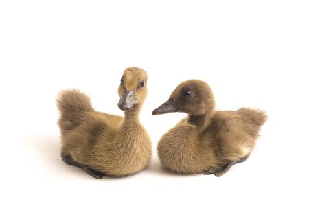 Two ducklings ( indian runner duck) isolated on a white background