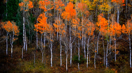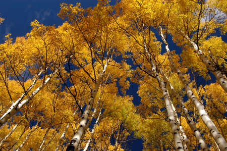 Autumn aspen trees fall colors golden leaves and white trunk bark maple red