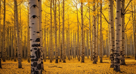 Aspen grove with yellow leaves in the fall season in Colorado.
