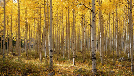 Aspen grove in the Rocky Mountains of Colorado during foliage season.