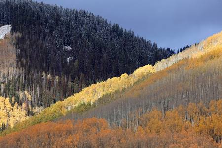 yellow, red and green aspens and colourful mountains of Colorado during foliage season