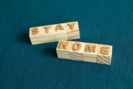 Word'Stay Home' wooden blocks on blue background. Rest, Self Quarantine, Virus prevention concept