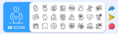 Stress line icons. Interest rate, AI generate, Inflation icons. Mental health, depression and confusion thoughts. Frustrated man, negative mood, panic fear outline icons. Vector