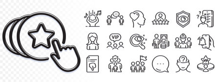 Survey, Noise and Friend line icons for web app. Glare of light effect. Message icon. Pack of Vip table, Human rating, Psychology pictogram icons. Consulting business, Hold heart, Woman signs. Vector