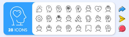 Mental health line icons. Interest rate, AI generate, Inflation icons. Stress anxiety, headache pill and person therapy set. Bipolar disorder, cognitive trouble and depression line icons. Vector