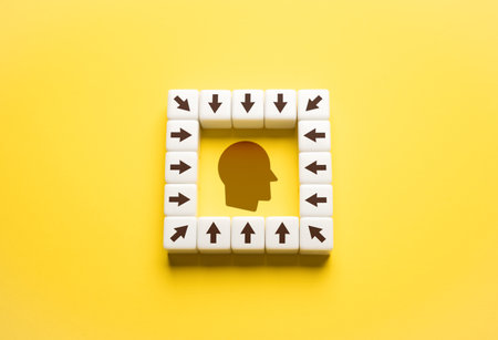 wooden cubes with the Leader Management Brain Idea icon. the concept of a leader's thinking