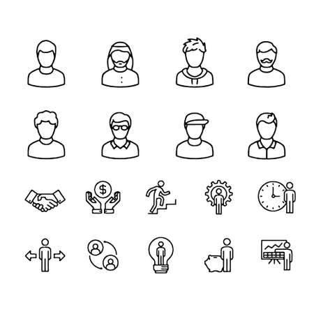 Business people line icons set. Teamwork, partnership, management, teamwork. Modern vector illustration.