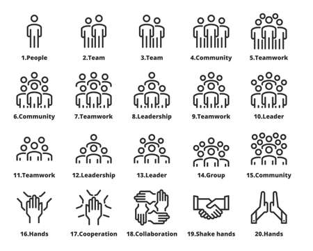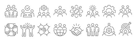 Team icons, such as people, group, employees, community, and more. Editable stroke.