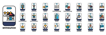 outline icons for various business categories. Easily customizable and integrated into website or app design. Icons include finance, marketing, technology and more.