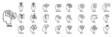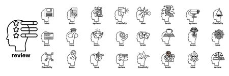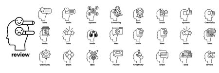 A Set of illustrations in the concept of brain and things in line art style