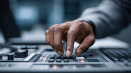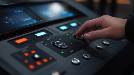 A panel filled with tactile buttons and a touchscreen where an operator manages various IoT devices demonstrating the intuitive control facilitated by enhanced 5G network capabilities