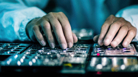 Experienced repair specialist replaces a laptop keyboard component demonstrating careful tech maintenance in a professional workspace